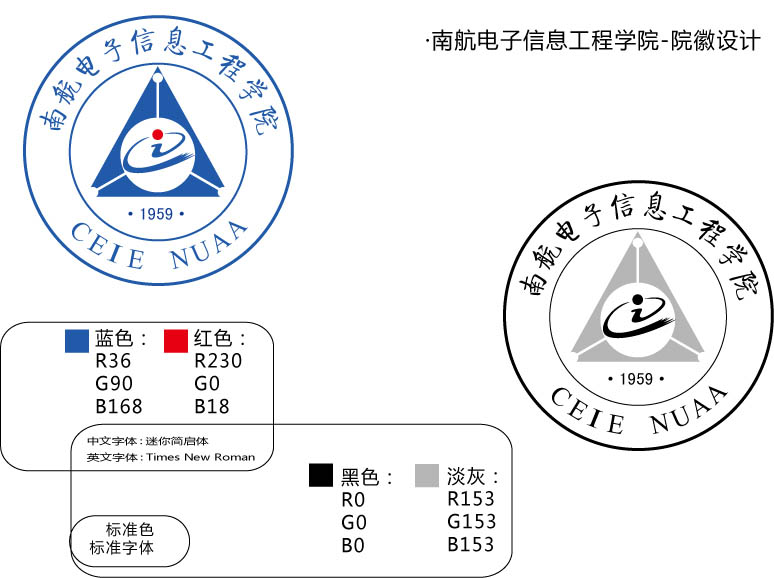 信息与通信工程、电子科学与技术二个一级学科及专业。三角形下边的数字“1959”标明了学院相关专业的成立时间;