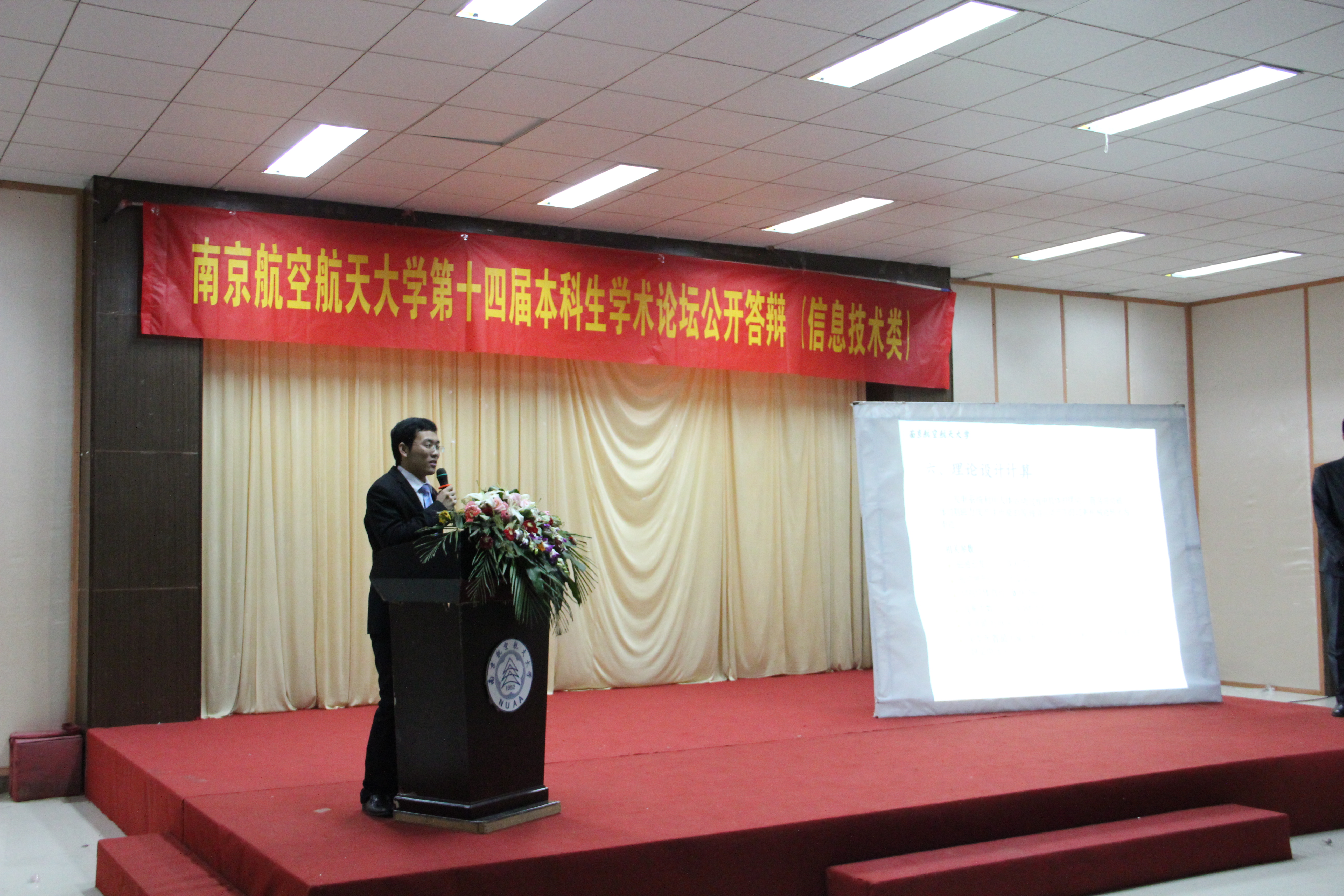 12月12日,成人漫画 第十四届本科生学术论坛(信息技术类)公开答辩在我校将军路校区艺术中心二楼多功能报告厅举行。答辩会邀请成人漫画 何小祥老师及计算机科学与技术学院孙涵老师担任评委。一同出席的还有成人漫画 团委书记张晓燕老师以及成人漫画 2011级辅导员杨紫园老师。共计来自五个学院的九支队伍参加了公开答辩。