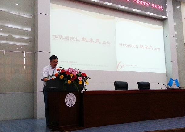 院党委书记冯绍红发表了热情洋溢的致辞,颁布了学院的办学理念,即愿景:经纬天地,慧通时空;学风:笃信好学,明理精工,教风:崇德爱生,业精善导;培养目标:高素质公民和电子信息领域的开拓者。学院党委副书记季海群解读了学院的办学理念。退休教师代表戴明帧教授作了学院文化内涵方面的发言,用自己的亲生经历讲述了学院在不同历史时期取得良好发展的关键原因在于先进的办学理念。学院副院长赵永久教授对仪式进行了总结。江苏三恒科技集团有限公司与学院举行了“三恒科创俱乐部”揭牌仪式和“三恒奖学金”签约仪式。