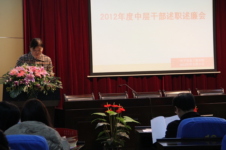 1月14日下午,成人漫画 在学院128报告厅举行2012年领导班子述职述廉民主测评会暨年终总结表彰大会。中国工程院院士、学院院长贲德和全体院领导、校纪委办领导以及全院教工70余人出席大会。