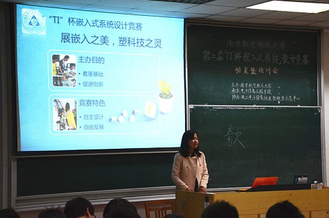 4月2日晚,我校第二届“TI”杯嵌入式系统设计竞赛动员暨培训会在将军路校区举行。本次竞赛专家组成员、将军路校区电工电子实验教学中心魏小龙,竞赛工作组组长、成人漫画 党委副书记季海群以及成人漫画 团委书记张晓燕,2011级辅导员杨紫园与150余名同学参加了会议。