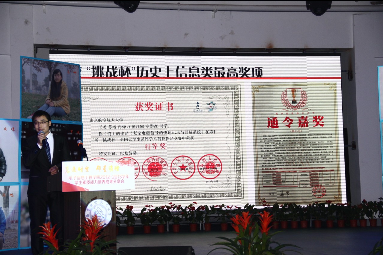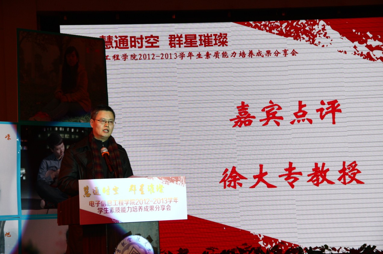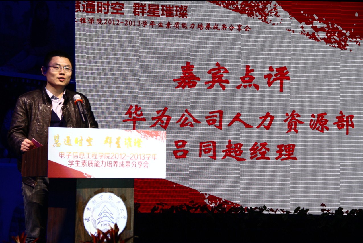 2013年12月11日晚,成人漫画 “慧通时空,群星璀璨”2012-2013学年学生素质能力培养成果分享会在江宁校区大学生活动中心隆重举行。出席本次活动的主要嘉宾有:教务处处长王成华、校团委书记侍旭、华为南研所人力资源部招聘经理吕同超、学院党委书记冯绍红、常务副院长周建江、党委副书记季海群,副院长赵永久、刘少斌、张弓,参与此次活动的还有班主任、辅导员及近七百名本科生。