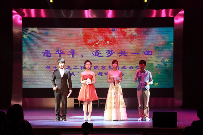 在“我和父母的晚会”上,学院舞龙队的精彩表演拉开了晚会的序幕,十佳献唱、诗朗诵、合唱表演等动情表达了学生对父母的感恩之情,微电影、歌舞剧等展现了学生丰富多彩的校园生活,其中小品“今天你打电话了么”真实还原了与父母的通话,令在场的父母感动不已。