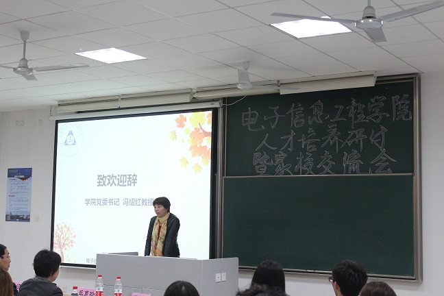 家校共育研讨会上,学院党委书记冯绍红教授致欢迎辞,她代表学院向远道而来的家长表示热烈的欢迎,深刻阐述了活动的背景及意义,指出家长开放日活动是学院“全员育人”、“全过程育人”的具体体现。党委副书记季海群则谈了近几年大学阶段家校共育的探索和成效。心理健康教育中心主任杨雪花老师讲解了家长如何把握大学生心理。12级辅导员丁亮向家长介绍了年级取得的成绩等总体情况,10级辅导员冷阳老师介绍了学院毕业生去向。江苏省先进班集体0412204班学习委员陆思文作为学生代表发言,向家长们介绍了班级良好的学风和丰富多彩的班级活动,家长代表张继红先生从三个方面阐述了开展家庭教育的方式方法。