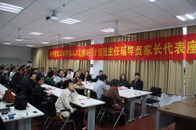 在班主任辅导员家长代表座谈会,学院党委副书记季海群、副院长赵永久、12级辅导员丁亮、12级全体班主任及受邀家长代表出席会议。会上12级辅导员丁亮作了题为《每一位学业暂时有困难的学生都是潜力股》的发言,0412204班班主任黎宁老师介绍了如何带领班级开展学风建设的经验和做法,在随后的自由交流环节,家长们踊跃提问,老师们均给予了一一解答。