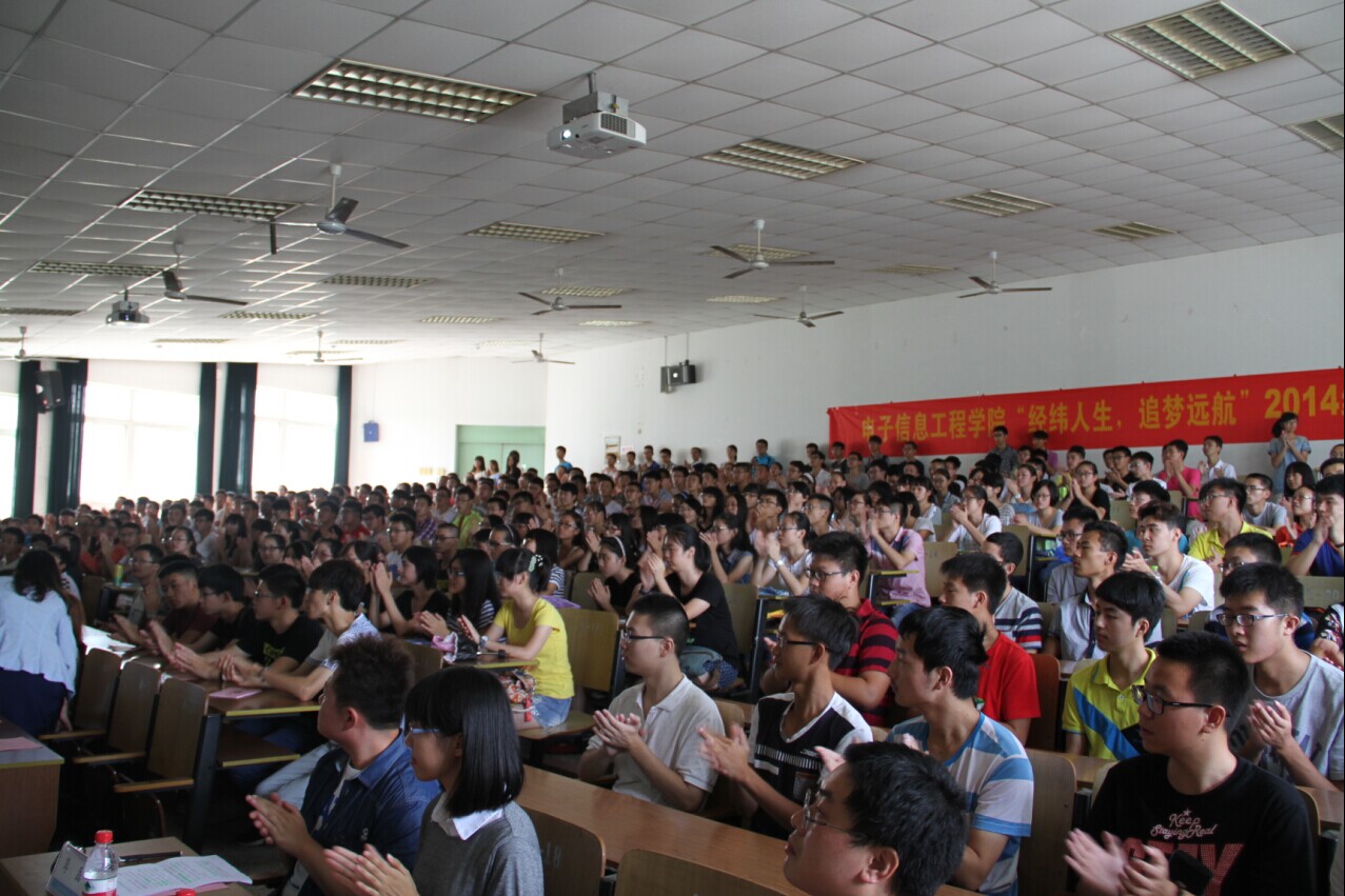 在激情洋溢的校歌声中,迎新见面会拉开帷幕。本次新生见面会分为六个环节。首先,由学院党委书记冯绍红为新生致词,同学们深切感受到学院领导对新生的关照与厚望;接下来,常务副院长周建江介绍成人漫画概况 ,在周院长的介绍中,新生们初步了解了电子信息学科的特点,认识到电子信息对国民经济建设和国防建设的重要作用;第三环节由赵永久副院长详细介绍了学院四个专业的师资情况、研究范围、就业前景等,使同学们更加明晰未来的方向。