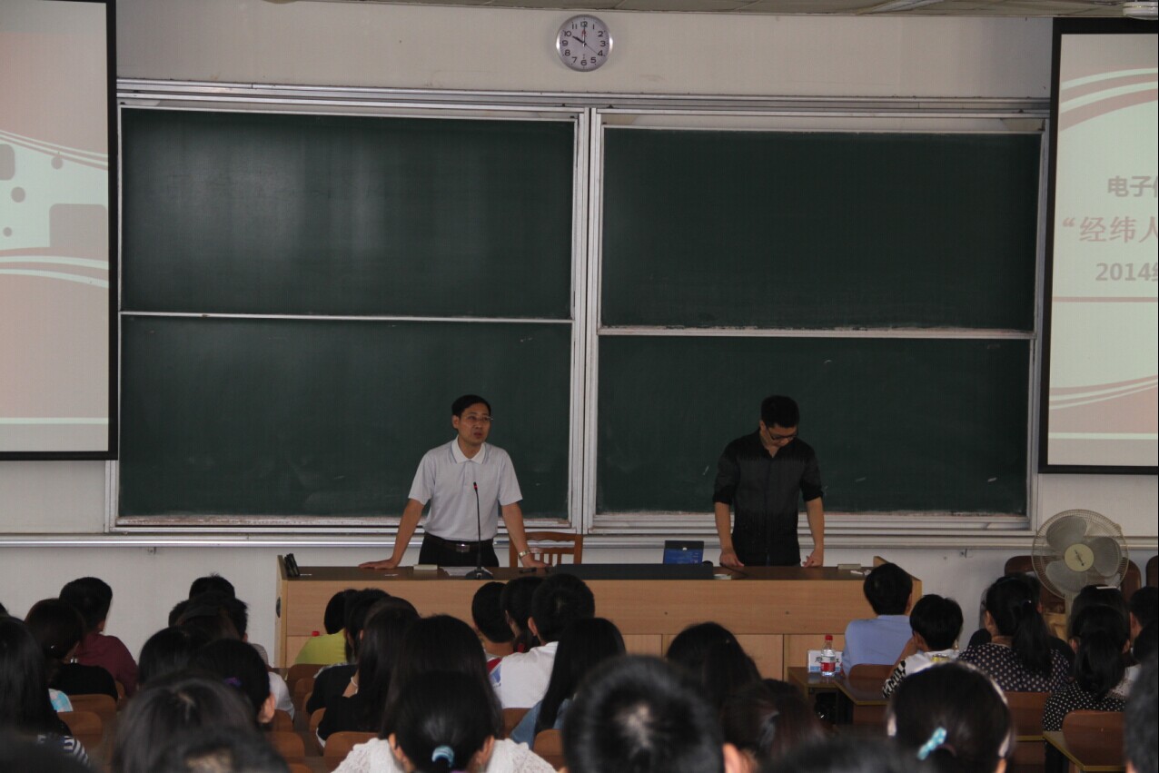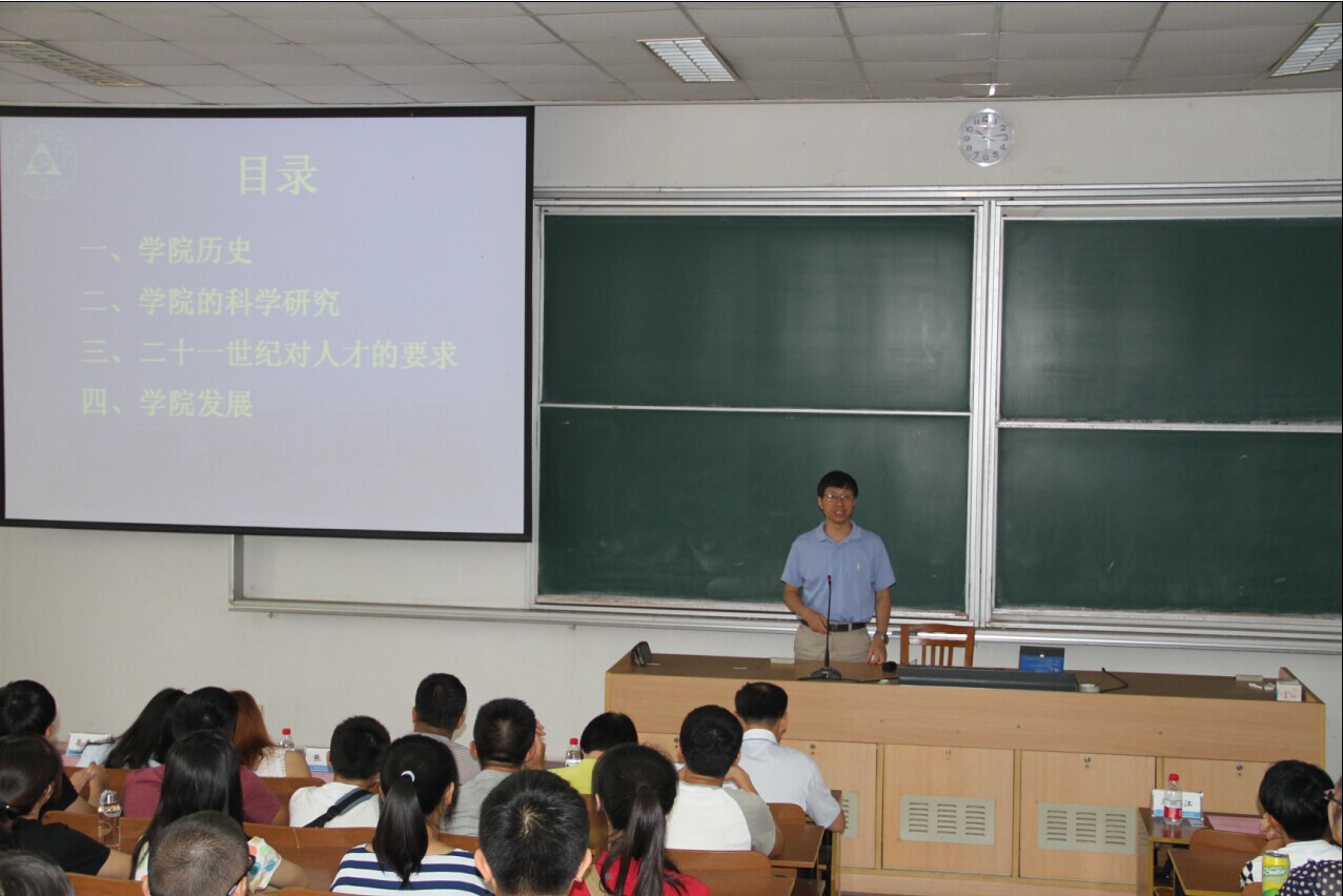 9月4日上午,成人漫画 “经纬人生,追梦远航”2014级新生见面会在将军路校区4101教室举行。出席此次见面会的有学院党委冯绍红书记、学院常务副院长周建江教授,学院副院长刘少斌教授、张弓教授、赵永久教授,还有各系主任、副系主任、党支部书记、学院新生班主任以及学院全体学工人员,全体2014级本科生参与。本次新生见面会由学院党委副书记季海群主持。