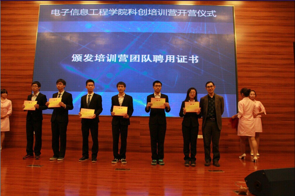 接着冯绍红书记和葛玉兰老师为培训营揭牌,徐川老师向培训营导师团颁发聘书,张跃老师向培训营团队办法聘书。最后,“群星”奖得主刘振宇强调了“勤于学习,勇于创新”的精神与树立团队意识的重要性,鼓励同学燃起兴趣的火苗,全身心投入到实践研讨中去。仪式在热烈的气氛中结束。