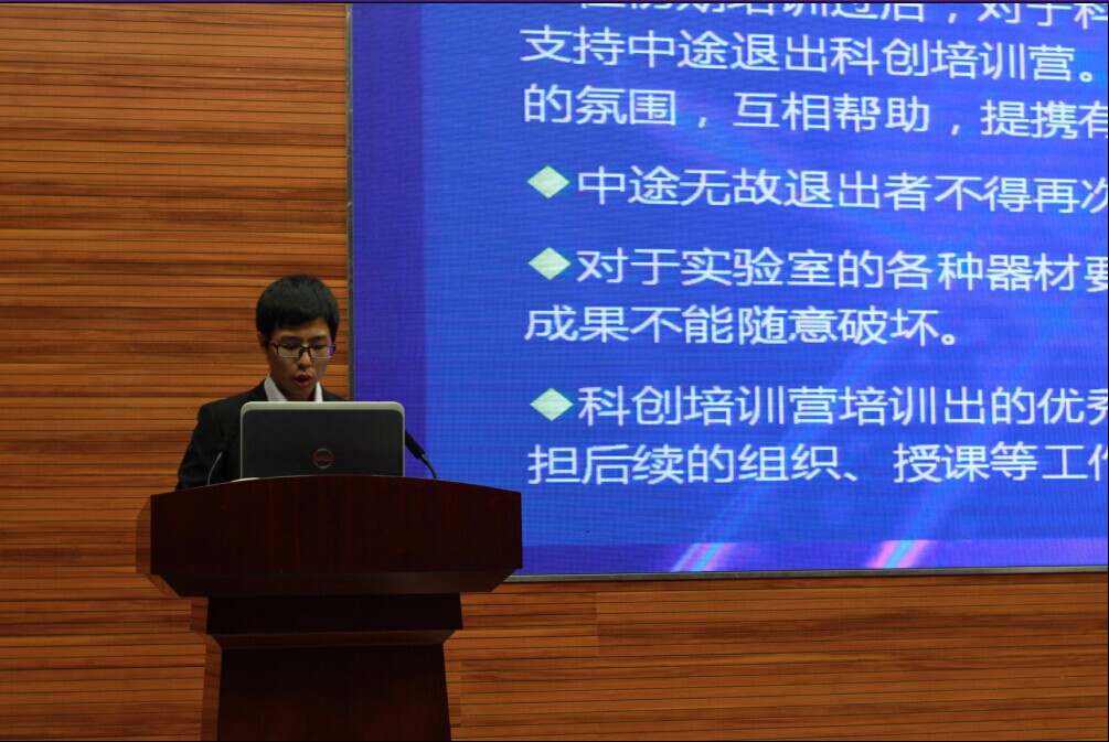 本次开营仪式议程丰富。季海群书记在动员讲话中详细介绍了学院的创新创业教育体系,并特别指出,要面向全体学生,着重通过普惠式的系列培训来选拔科创团队,培养新一批优秀人才,不断为学校的创新教育输送新鲜血液。学院科协副主席王鑫在仪式上回顾了科创培训营的发展历程,对新一届学员提出了更高的技术要求,校科技中心嵌入式工作室副主任曾福代表学生导师团队介绍了培训计划;指导老师洪峰分享了学习心得和竞赛经验,为入门学习提出了宝贵建议。