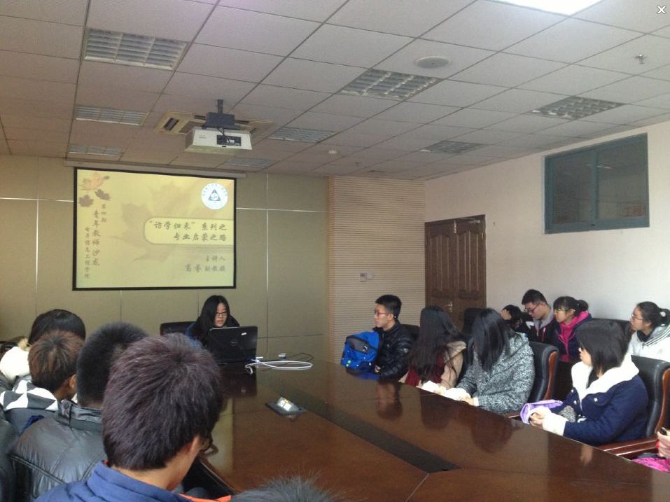 随后,葛芬老师介绍了自己作为访问学者在美国的学习和生活情况,给有出国深造的同学提供了可行性的建议。在讲到自己在海外参加高级会议时遇到华为人的身影时,葛芬老师激动的表示,这是作为中国人的一种自豪,同时嘱咐大家要学好专业基础课,为以后成为中国电子信息工程领域的高级人才奠定良好的基础。