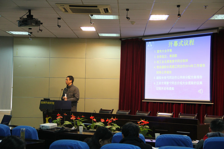 校工会常务副主席袁贵平在开幕式上致辞,代表学校对大会的召开表示热烈的祝贺,并充分肯定了学院教代会、工代会在推动学院事业发展中的重要作用。他指出,学院教代会将关系学院发展或者教工利益密切相关的大事作为中心议题,有力的促进了学院各项决策的民主化和科学化,对增强凝聚力、调动教职工的积极性、主动性和创造性起到了极大的推动作用。