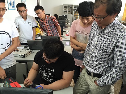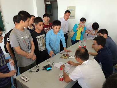 5月17日,成人漫画 第三届“TI杯”嵌入式系统设计竞赛初审工作在将军路校区3406和3410教室如火如荼地进行,现场的评委有来自成人漫画 的王旭东副教授、夏伟杰副教授和四名研究生。