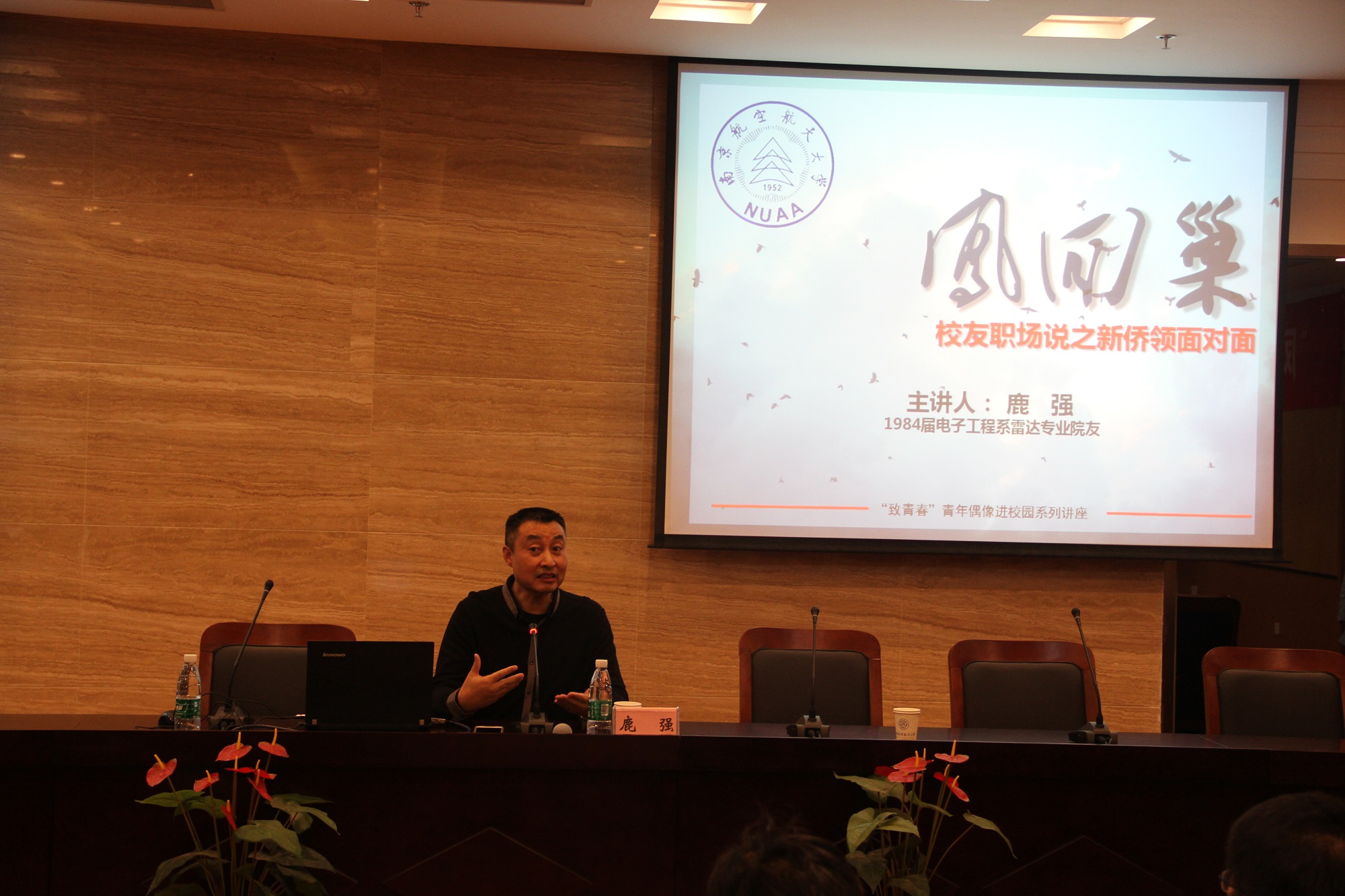 雷达专业86级校友、现美中文化教育基金会主席鹿强重回母校参加新侨领面对面系列活动,包括“凤回巢”校友职场说和“致青春”青年偶像进校园讲座。一同前来的还有学院校友,现江苏省广电有线信息网络股份有限公司首席内容执行官、江苏华博在线传媒有限责任公司执行董事、总经理曹伟炯女士。