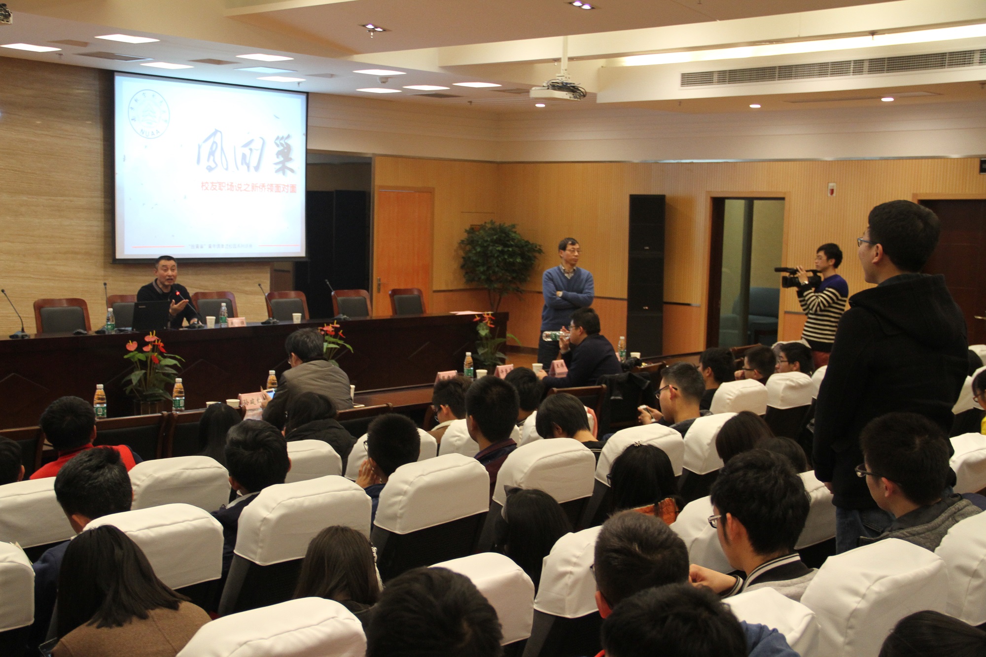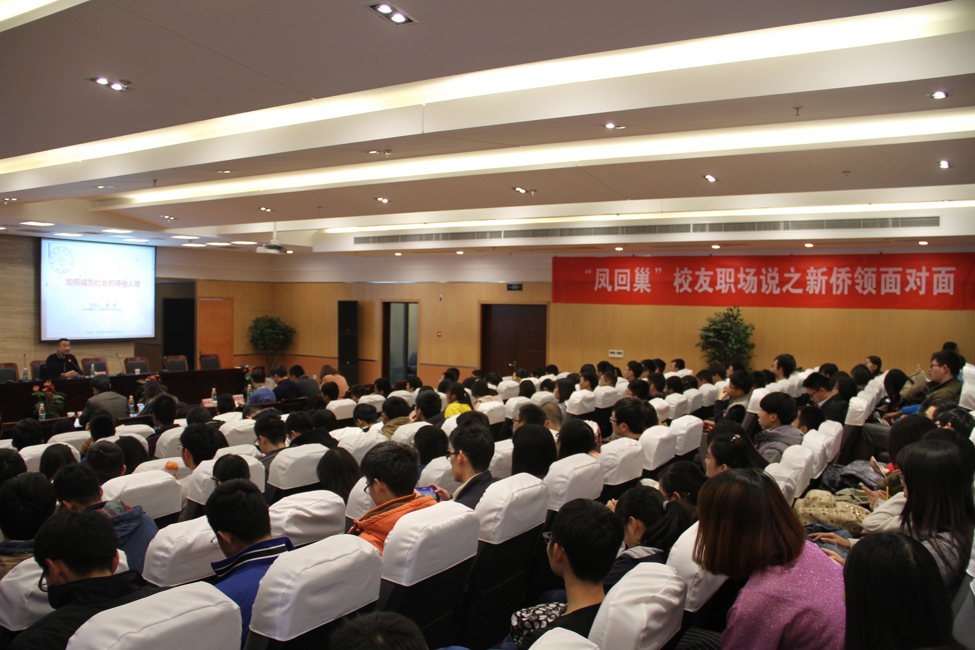 报告厅进行专场讲座,由学院常务副院长周建江教授主持。现场有各个学院的本科生和研究生同学前来参加,气氛热烈欢快。鹿强从个人经历出发,围绕“如何成为社会的领袖人物”的主题,从大学是人生的转折点、只要努力就有机会、人生的价值在于奉献、立足南航放眼世界四个方面介绍了宝贵的人生经验,内容朴实亲切、富有启发性。他既殷切地希望同学们能远赴重洋去国外学习拓展,通过自己踏实的努力和奋斗为自己赢得未来,也特别嘱托同学们将来要记得母校,多为母校做贡献。最后,鹿强还特别公布了个人通讯方式,真诚地希望能帮到同学们,此次讲座也深深打动和启发了同学们,直至讲座结束校友还在热情地解答同学们的疑问与困难。