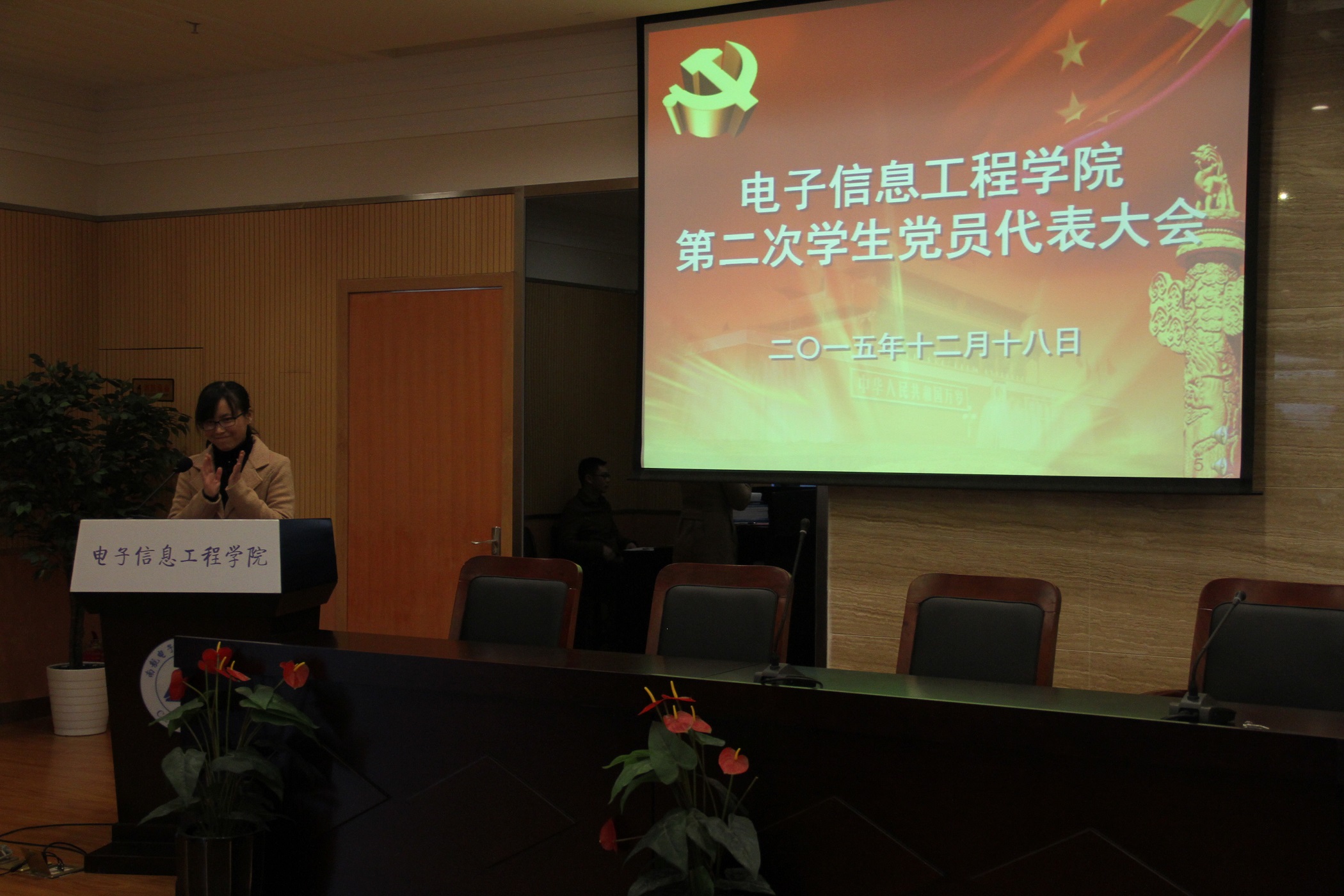 2015年12月18日下午,成人漫画 在学院报告厅召开第二次学生党员代表大会。大会由学院团委书记张晓燕主持,教师党员代表、学院全体辅导员和各年级的学生党员代表共133人参加了本次大会。