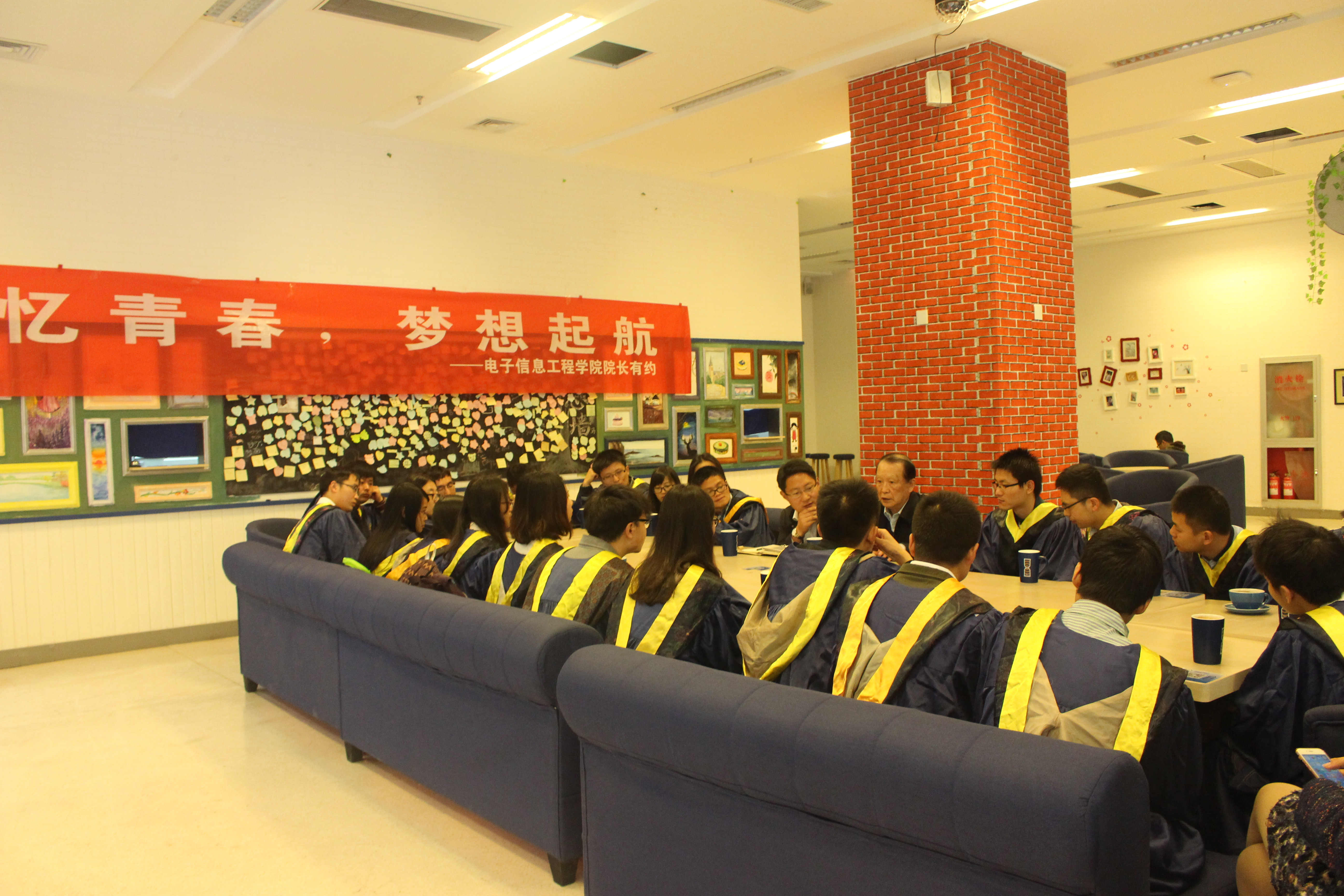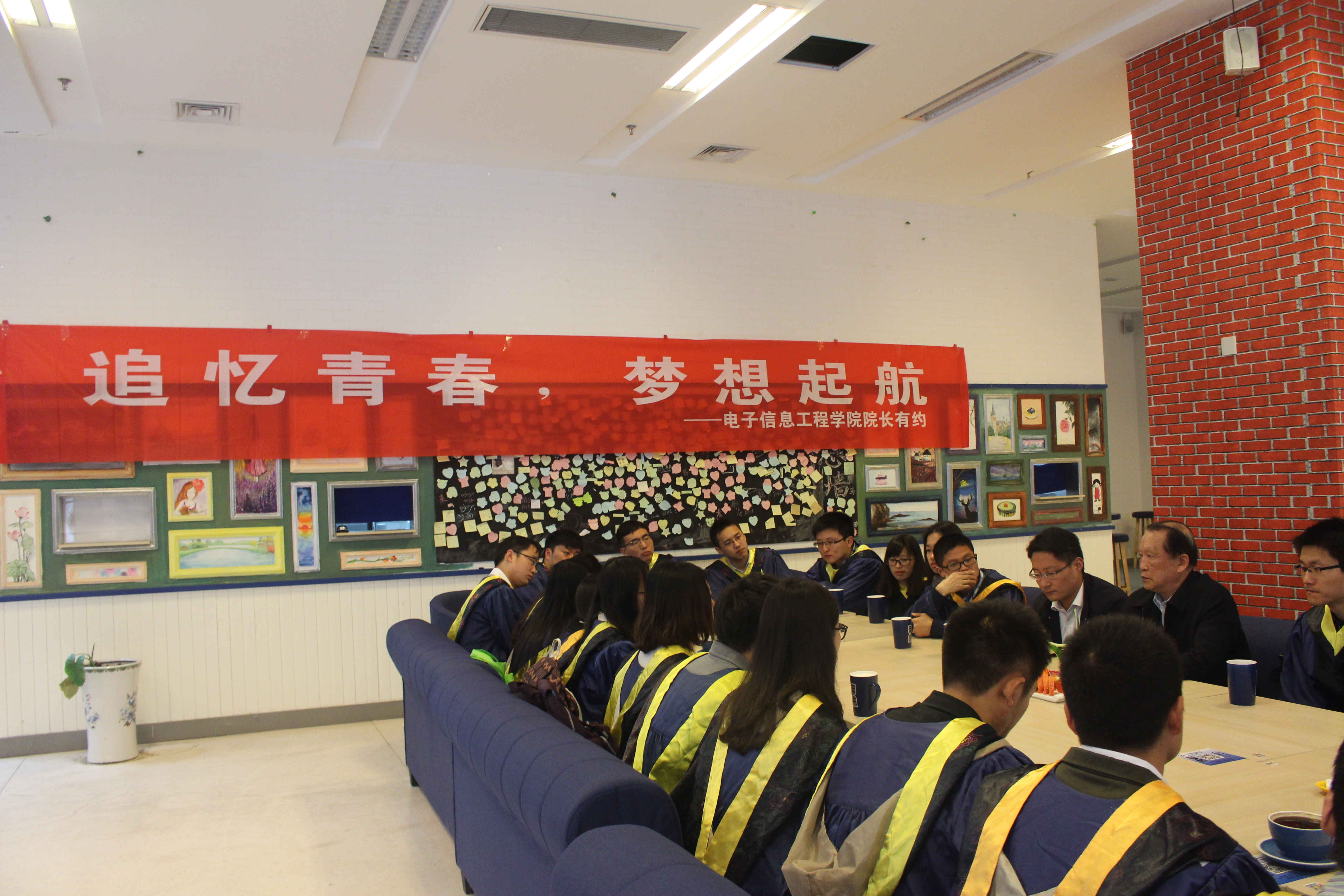 2016年3月31日上午,成人漫画 在江宁校区图书馆咖啡厅举办了“追忆青春,梦想起航”——成人漫画 院长有约活动。学院院长、中国工程院院士——贲德、学院党委副书记王伟华、研究生辅导员徐艳惠和25名2016届优秀研究生毕业生参与了此次活动。