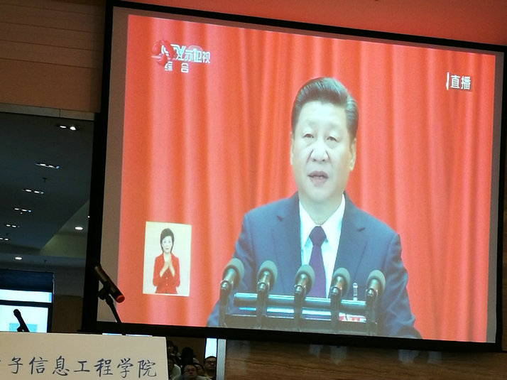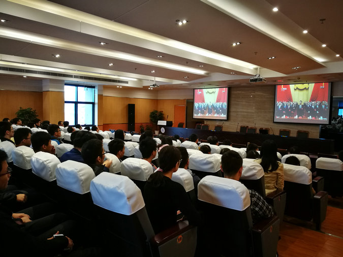 2017年10月18日,成人漫画 组织师生在学院515报告厅集中观看了中国共产党第十九届全国代表大会的开幕式直播,认真收看习近平总书记在开幕式上所做的大会报告。在习近平总书记作重要讲话的过程中,全体老师都聚精会神地聆听,并不时表现出激动和兴奋的心情,很多老师在观看习总书记报告时还用心做笔记,还有老师在微信等社交平台中表达了观看十九大的激动心情和心得体会。