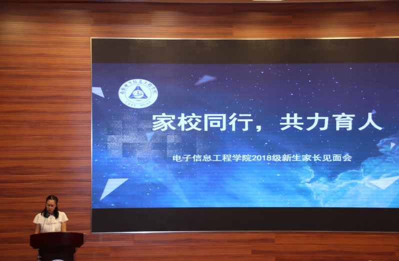 随后,2018级辅导员郭力榕为家长介绍了学院的学籍管理、评优评奖制度以及学生资助管理等相关情况,对家长们比较关心的学分绩点计算方法和评优评奖工作进行了解释,同时也告知家长们学校的违纪行为处理办法,提醒家长警惕孩子的违纪行为。