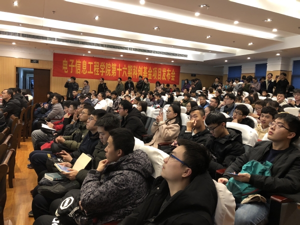 2018年12月19日下午,成人漫画 第十六期科创基金项目发布会在学院楼515报告厅顺利举行。出席本次发布会的有学院教学副院长张弓老师,电子科学与技术系黄正宇老师,信息与通信工程系夏伟杰老师、戚楠老师、王鹏老师,院团委书记徐艳惠老师,2017级辅导员周高雨老师,以及研究生代表和各年级本科生。
