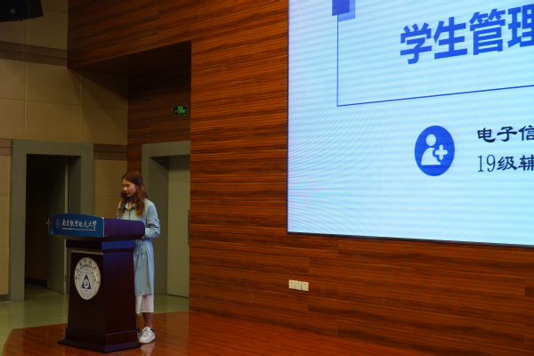 接下来,学院教学秘书周贞琪带来了本科生教务“四件套”,分别为教务处网站、掌上教务APP、本科生培养方案、学生手册,详细介绍了南航教务管理方法,明确了我校的人才培养模式。