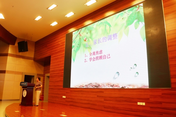 随后,校心理健康中心主任杨雪花以“做一个合格的大学生家长”为主题向家长们说明了大一新生常见的心理问题和原因,并以大学生的新特点和学生的成长需要为切入点,提出“放手不等于放任与放纵”等理念,建议家长要端正好心态。