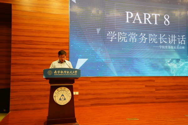 接着,班主任代表夏伟杰肯定了同学们十二年的付出,恭喜同学们进入南航,并希望同学们能快速完成角色转变、积极的融合到集体、主动和老师、家长沟通交流。