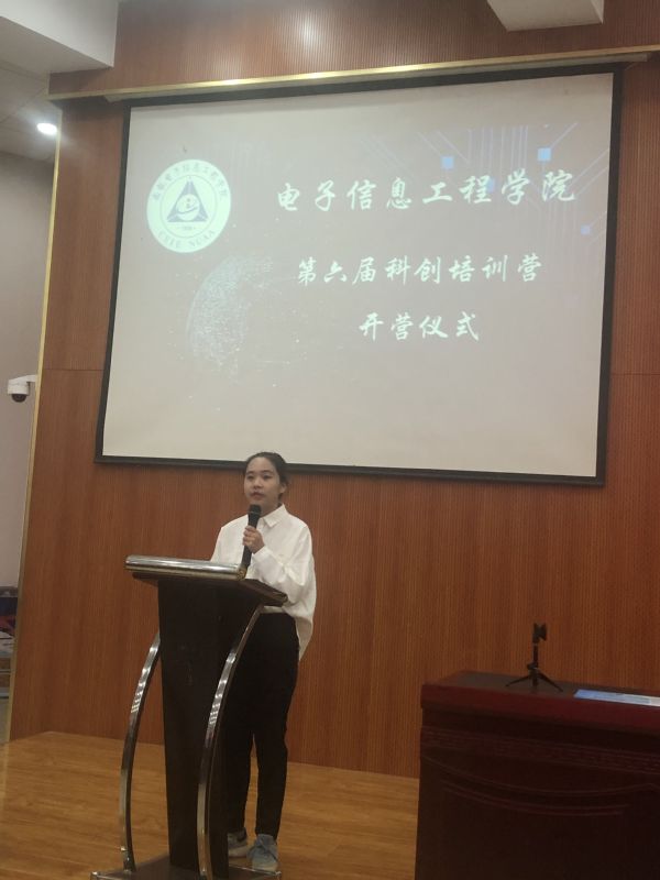 会上李筱筱同学带来了科创培训营的开营消息。科创训练营是由成人漫画 科学与技术协会组织,为对科技创新感兴趣的同学提供学习实践及交流沟通的平台,培养同学们的基本的科技素养及科技创新能力。