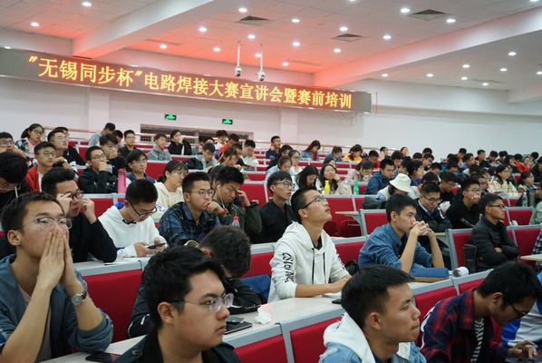 2019年10月29日晚,由成人漫画 举办的“无锡同步杯”第七届电路焊接大赛暨科创培训营开营仪式在将军路校区2110教室举行。参加本次活动的有无锡同步公司的人力资源部经理刘进军先生、工艺工程师杨坤先生、人力资源专员何丽丽女士、成人漫画 团委徐艳惠老师和来自全校各个学院的400余名同学。
