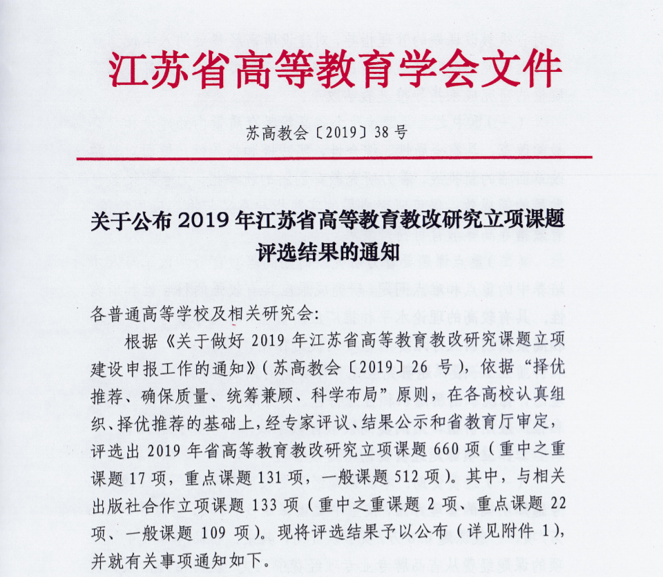 2019年12月10日,江苏省高等教育学会发布了《关于公布2019年江苏省高等教育教改研究立项课题评选结果的通知》,成人漫画