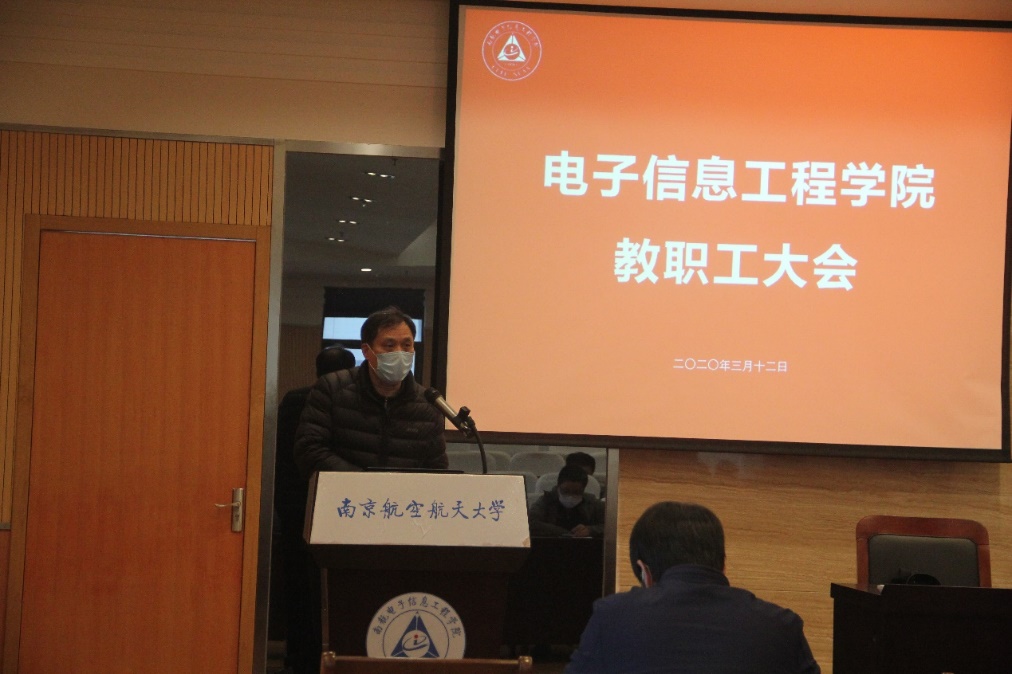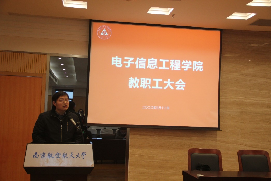 校长助理,常务副院长吴启晖作了“强化科学简约高效治理,再创学院发展新高度”的大会报告。他首先对老师们在战“疫”期间所表现出的识大局、守本责的精神态度和工作热情表示感谢。报告总结了2019年学院的主要工作与取得的成绩,2019年学院整体建设工作出色,在全校KPI考核评估中,整体工作考核位列全校第3;国家科技进步奖取得突破,获2019年全校唯一的国家科技进步二等奖,实现了学院零的突破;师资队伍建设提质显著,人才集聚效应初见成效;研究生培养质量提升工程稳步展开;信息工程获国家一流专业建设点;学生科创工作成绩突出;绩效改革继续向前,学院绩效按照“守底线、讲传承、突贡献”的思路展开获得广大教职员工的肯定。吴院长强调学院2019年的成绩是学院师生共同努力下取得的,是在秉承“争创一流学科,培养一流人才”的初心,“咬定青山不放松”的拼劲下获得的,体现了成人漫画 师生“朝气蓬勃、积极向上”的战斗力。