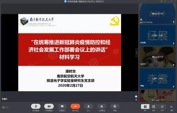 党建与教学科研互相融合、互相促进一直是学院天地一体频谱认知管控实验室党支部和微波光子学实验室党支部两支纵向党支部的工作思路,疫情期间,两支团队导师老师不仅在身心健康上对同学们倍加关怀、时时问候,同时也高度重视同学们的学习情况,指导同学们有条不紊的开展科研,真正做到“停课不停研”。