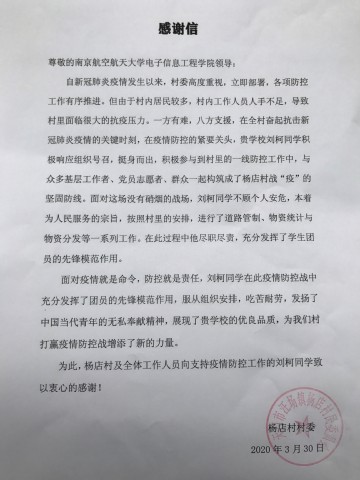 学院收到的感谢信