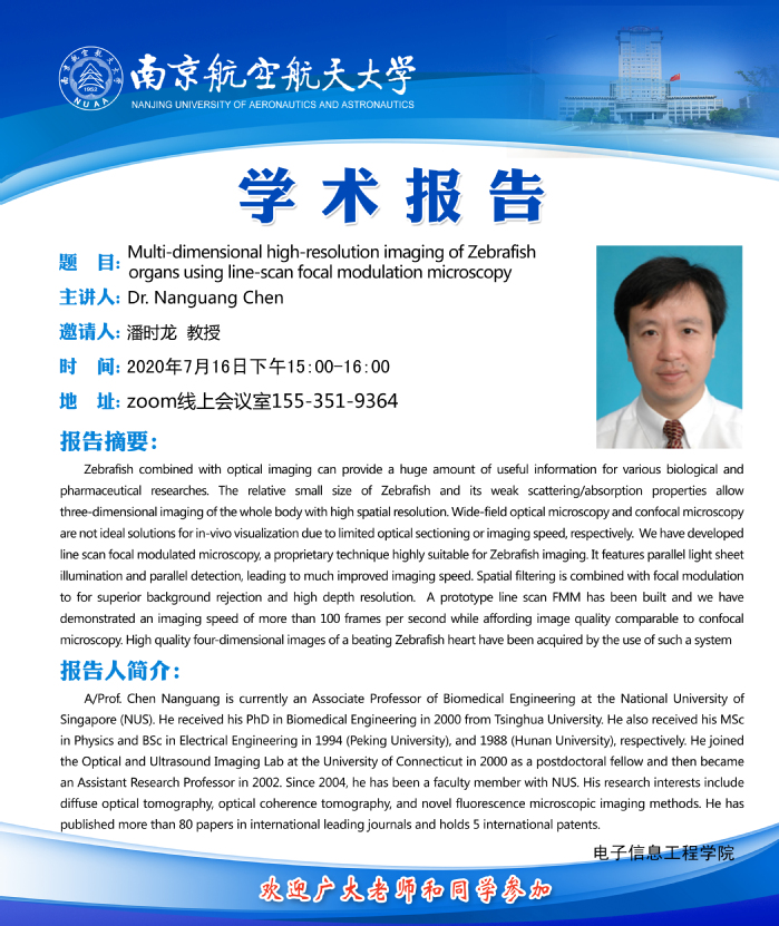 学术报告——Multi-dimensional high-resolution imaging of Zebrafish organs using line-scan focal modulation microscopy