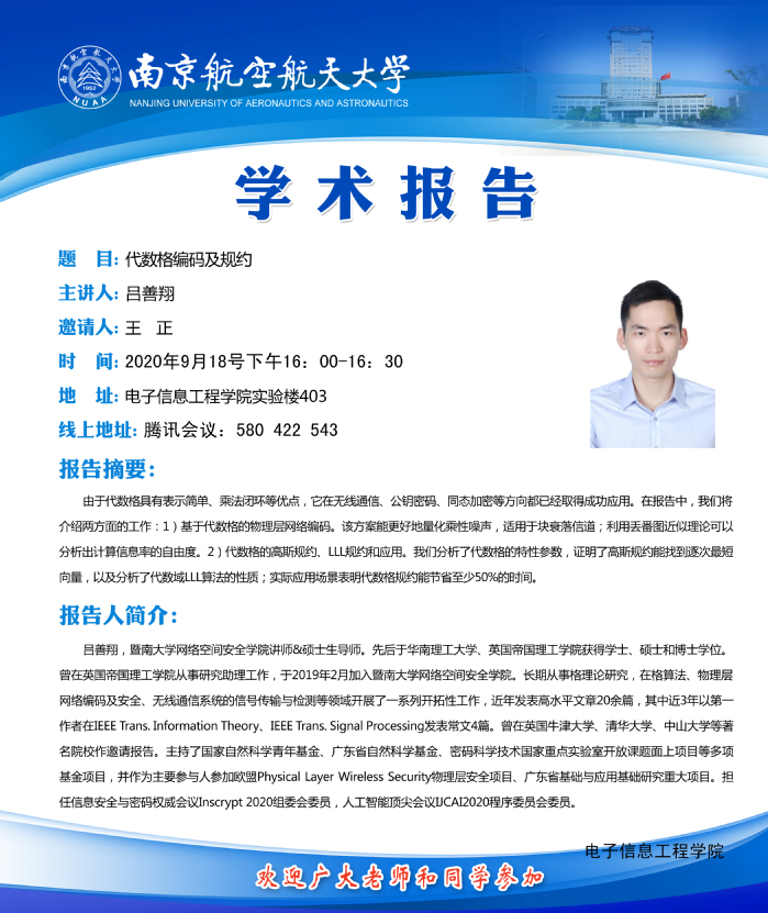 学术报告——代数格编码及规约