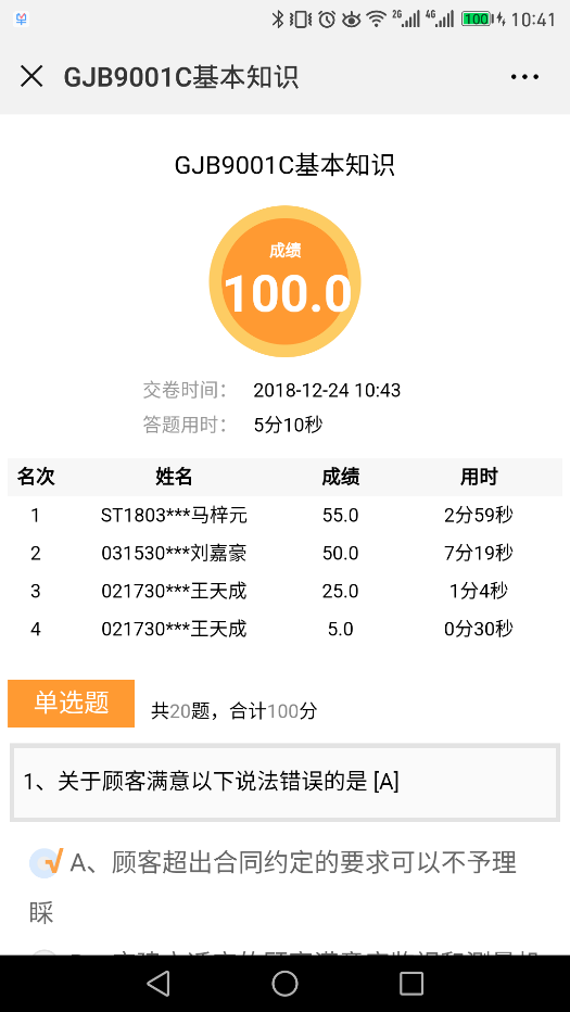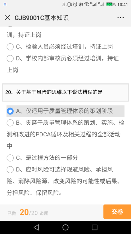 GJB9001质量管理体系微信测试系统