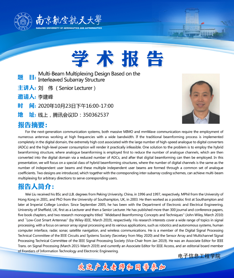 学术报告——Multi-Beam Multiplexing Design Based on the Interleaved Subarray Structure