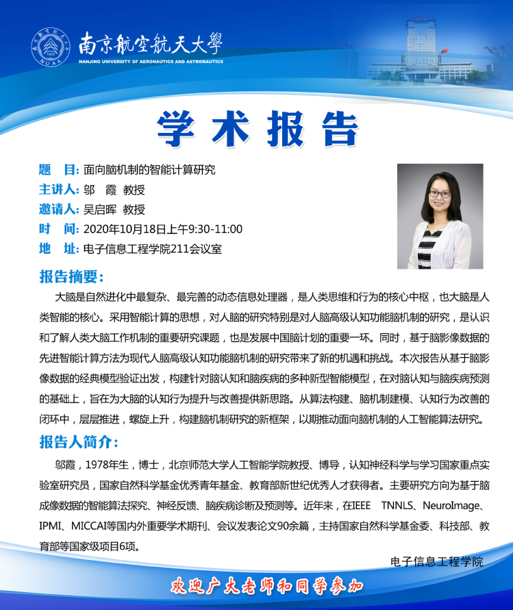 学术报告——面向脑机制的智能计算研究