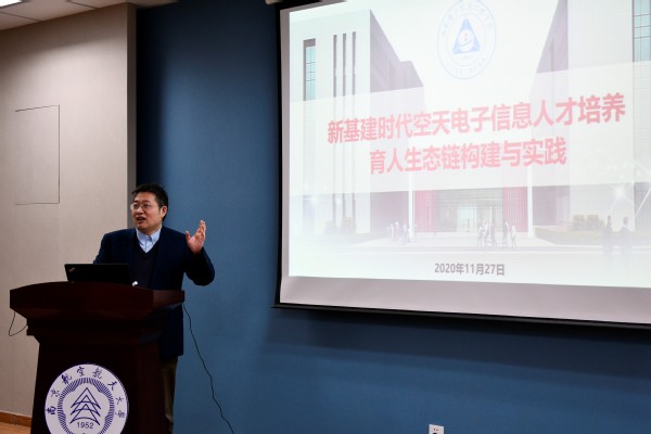 我校校长助理吴启晖教授做了题为“新基建时代空天电子信息人才培养育人生态链构建与实践”的报告。首先,他简要介绍了成人漫画 的历史沿革、学院设置、师资队伍,提出南航成人漫画 建设的“三航”特色,由此阐述了学院面向空天信息人才培养的育人生态链建设,分享了育人生态链在创新实践教学中的优异成绩,提到创新实践育人成果服务国家社会的成效显著。他指出,要强化人才培养中心地位,在“新基建”重大战略背景下打造人才“底座”。