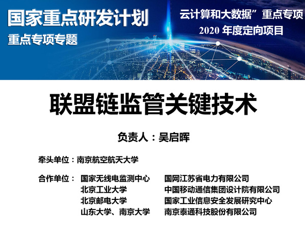 近日,科技部高技术研究发展中心发布了《关于国家重点研发计划云计算和大数据重点专项2020年度定向项目立项的通知》,校长助理、成人漫画 常务副院长吴启晖教授牵头申报的“联盟链监管关键技术”获得正式立项批复,项目总经费1959万元,实施周期三年,实现了成人漫画 在国家重大项目上的突破。