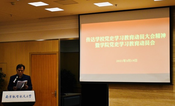 聂东林指出,今年是建党100周年,也是“两个一百年”奋斗目标历史交汇关键节点,我们开展党史学习正当其时,十分必要。习近平总书记在党史学习教育动员大会上的重要讲话为我们开展党史学习教育指明了方向,提供了根本遵循。郑书记和单校长在我校党史学习教育动员大会上的讲话则为我们立足南航实际,开展特色党史学习教育,提出了指导思想,注入了强大动力。