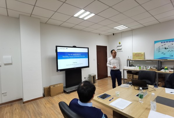 杨龙副教授做了题为“On the Applications of Matching to Hybrid Beamforming”的学术报告。杨教授首先介绍了混合预编码的研究背景与研究现状,随后详细介绍了具有完全自适应连接的预编码结构的毫米波系统的混合预编码设计。杨龙副教授对混合预编码设计中面对的挑战性问题进行了总结,随即重点介绍了所开发的高效交替混合预编码算法,并对该算法的性能进行了全面地分析。最后,杨龙副教授总结了混合预编码的优缺点并对未来的研究方向进行了展望。