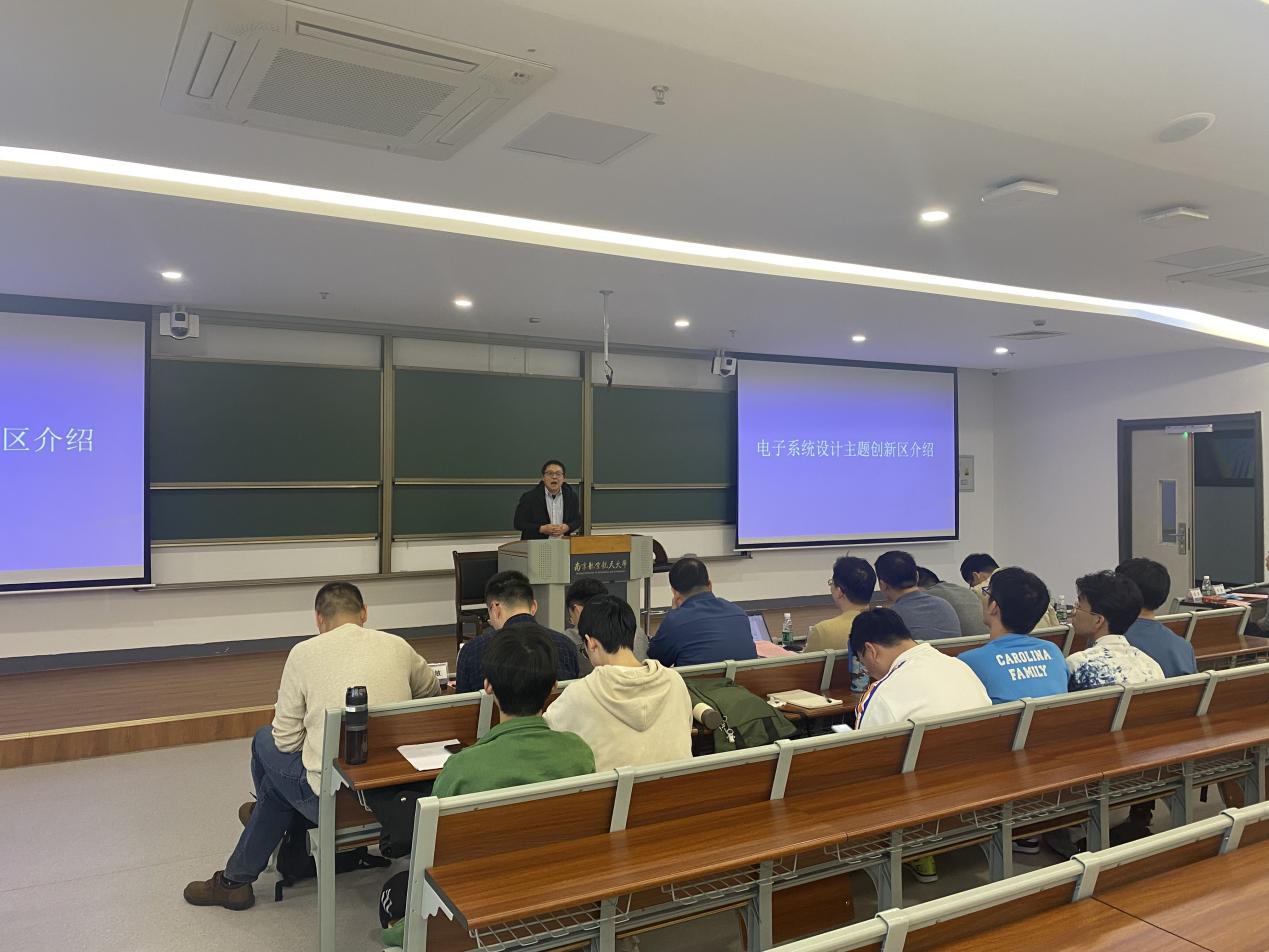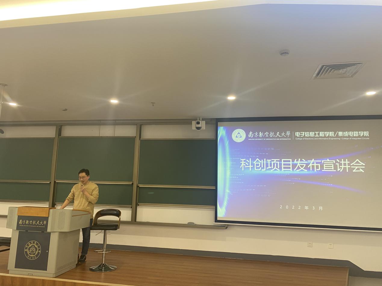 接下来,宣讲会进入到科创项目的介绍发布环节,各主题创新区代表包括“集成电路硬件安全主题创新区”代表黎江老师、“微波光子技术主题创新区”代表薛敏老师、“智能信息处理主题创新区”代表徐帆老师,“电子系统设计大学生主题创新区”负责人胡志忠老师,“微动目标射频感知技术大学生主题创新区”学生代表郭栋财,“雷达探测大学生主题创新区”代表耿哲老师以及集成电路系教师代表陈珂老师。他们分别为同学们详细介绍了各自的科创项目,并鼓励同学们选择自己感兴趣的领域,在学院提供的支持平台上积极参与科创活动。
