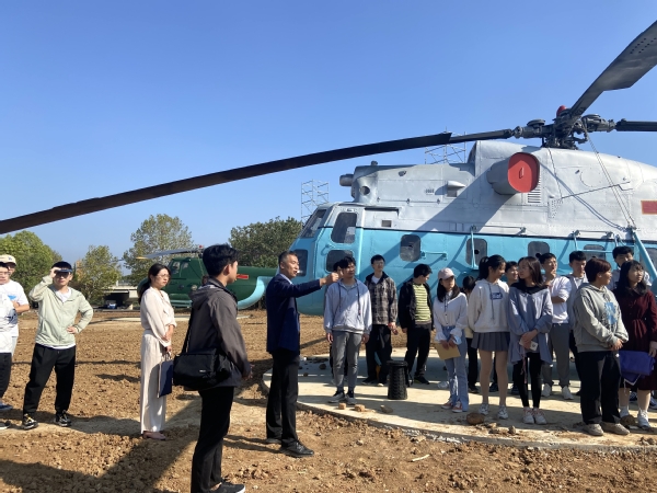 周焱在飞机广场向同学们讲解了每架飞机的历史和背后的故事,详细介绍了飞机广场的建设过程和南航70周年的发展历程。同学们沉浸式感受着学校的栉风沐雨、砥砺奋进,对南航精神和“航空报国”的办学传统有了更深的理解,荣校爱校的使命感油然而生。