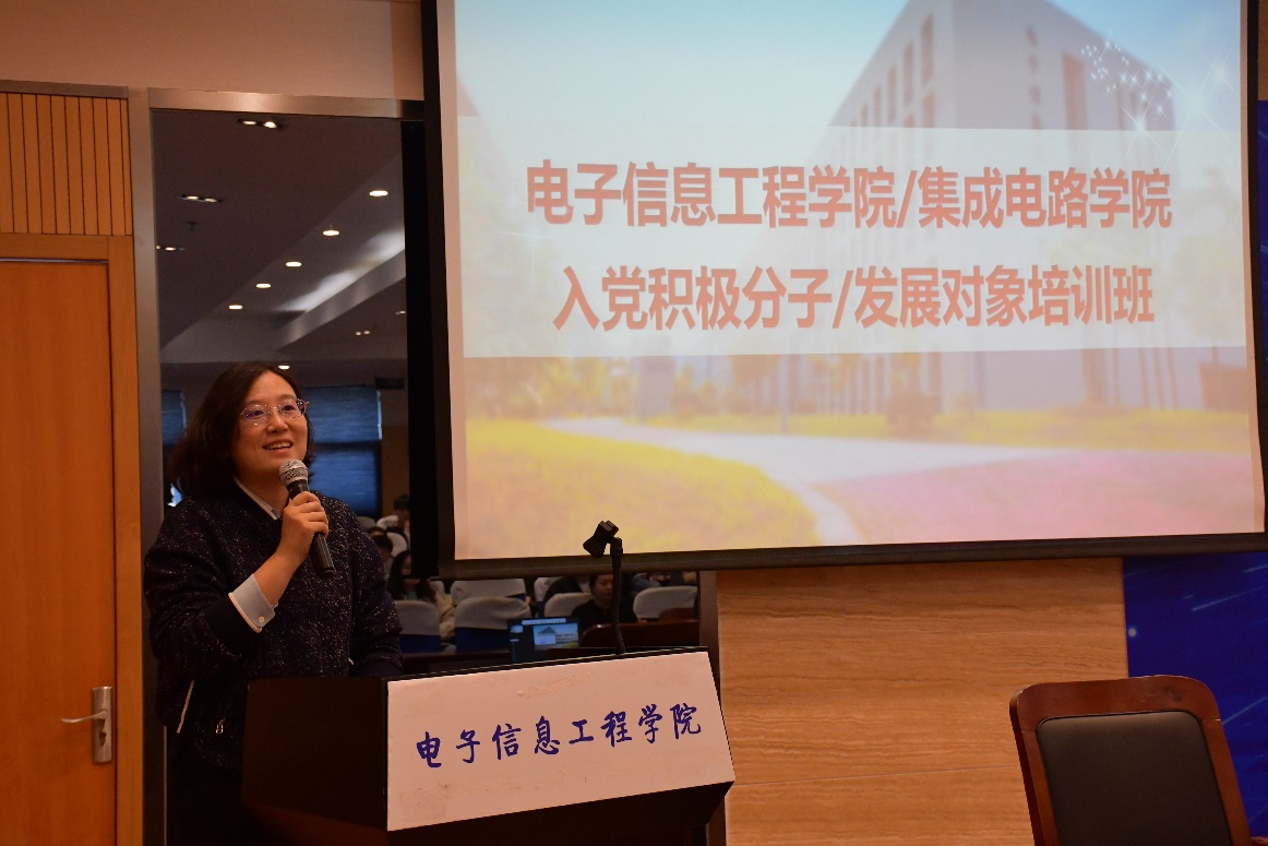 为了提高入党积极分子及发展对象的政治素养和理论水平,11月9日,成人漫画 /集成电路学院在学院515报告厅举办入党积极分子/发展对象集中学习培训,邀请了马克思主义学院副院长何畏教授做专题讲座。学院党委书记季海群,党委副书记雷蕾,组织员刘洁、学生辅导员与本期入党积极分子及发展对象以线上、线下相结合的方式参加会议,此次培训由雷蕾主持。