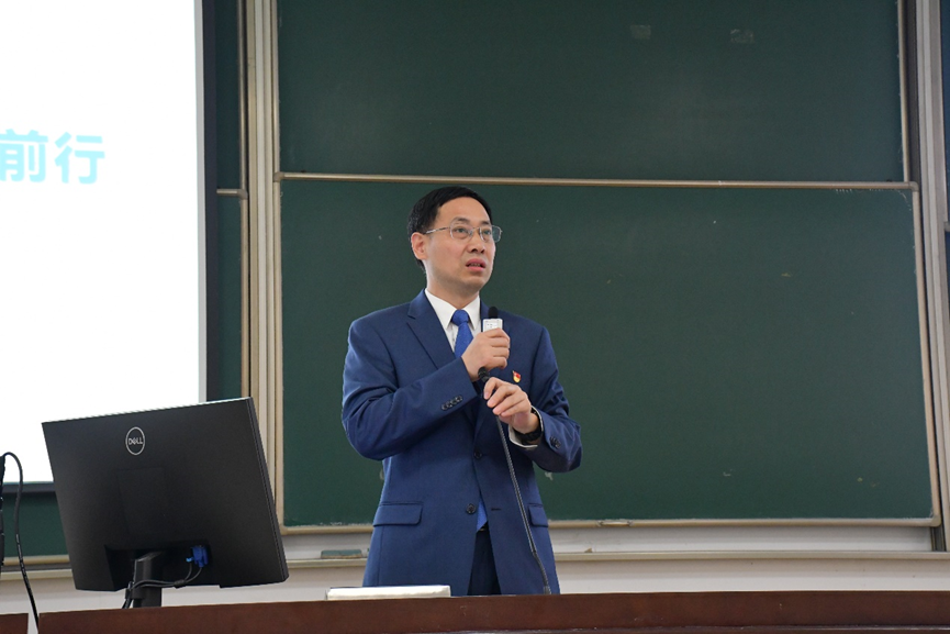 随后,学院常务副院长潘时龙作了“行远自迩、踔厉奋发,实现学院高质量发展”的大会报告,报告从党建工作、学科建设、人才培养、师资队伍、科学研究和国际合作六个方面介绍了学院“十四五”以来学院的发展现状,对学院建设发展近年来取得成绩作了详尽介绍,对全院教职工的努力工作表示感谢。对于学院未来发展,他强调,学院下一个发展目标是争创学校下一个“双一流”学科,全体教职工要牢记立德树人根本任务,以党建工作引领学院思政教育和师德师风建设,培育优良的学院文化;要加大开放办学,走出“象牙塔”思考发展,近年来学院各类平台快速发展,国家级人才数量不断增加,希望学院教职工要充分利用学院构建的平台,借助学院优势资源,加快提升自身水平,瞄准国家重大战略需求,在祖国急需的方向上做出更大贡献;要进一步加强产学研合作,主动对接社会需求,进一步提升成果转化能力。