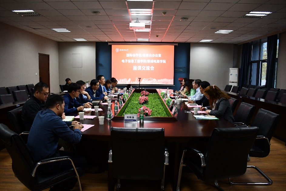 2022年11月11日下午,校国际合作处/港澳台办公室张卓处长、张国权副处长、沈敏副处长等一行到成人漫画 /集成电路学院调研座谈。学院党委书记季海群、常务副院长潘时龙、副院长刘伟强、张小飞、院长助理黎宁等出席会议。
