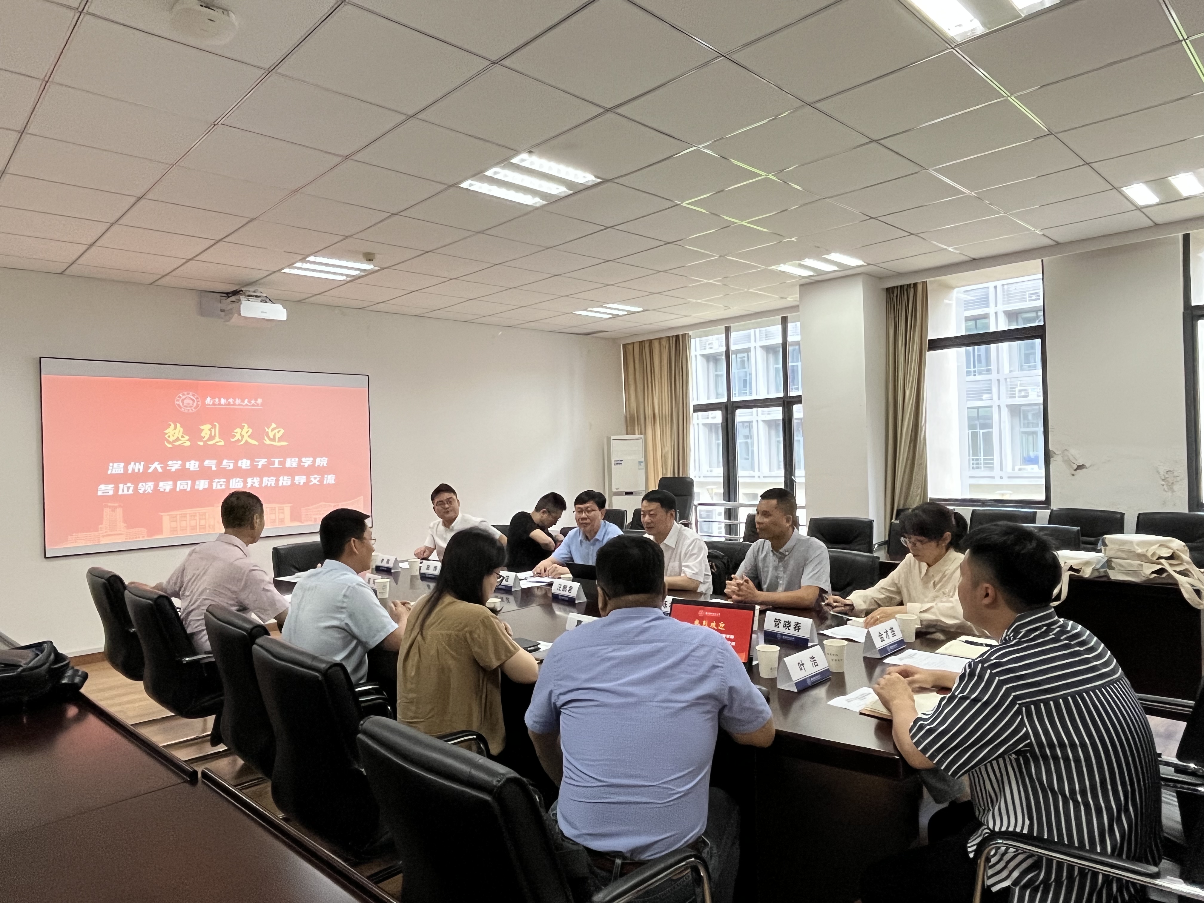 2023年6月27日,温州大学电气与电子工程学院汪鹏君院长和陈孝敬副院长率队来成人漫画 进行关于微电子科学与工程专业建设的调研交流。成人漫画 /集成电路学院的刘伟强副院长、国家教学名师王成华教授、集成电路系主任葛芬、党支部书记陈珂、副系主任陈鑫参加了此次交流。会议由刘伟强副院长主持。
