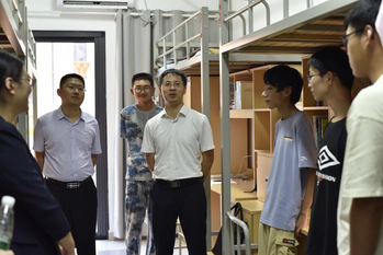 学院全体院领导于会议之后,在校区党工委副书记贡海俊的带领下参观了天目湖校区一站式学生社区,同时,带着对新生们真挚的问候与关怀,走访了数个学生宿舍,潘时龙教授表示“宿舍是学业的第二战场,也是学习生活中最重要的一环,要塑造良好的宿舍环境,营造优良的休息氛围。”让同学们能在自己温馨的“小家”中为自己第二天的学习“充电赋能”,在学院领导的亲切问候下,同学们也感受到来自学院的关怀与温暖,立志成为电子信息领域的卓越人才。