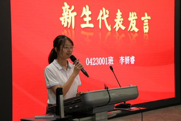 2023级学院本科新生代表李妍睿同学代表全体新生发言,表达了作为四院新生的自豪与荣幸,立志通过学习成为有用之才,为国家发展作出贡献。