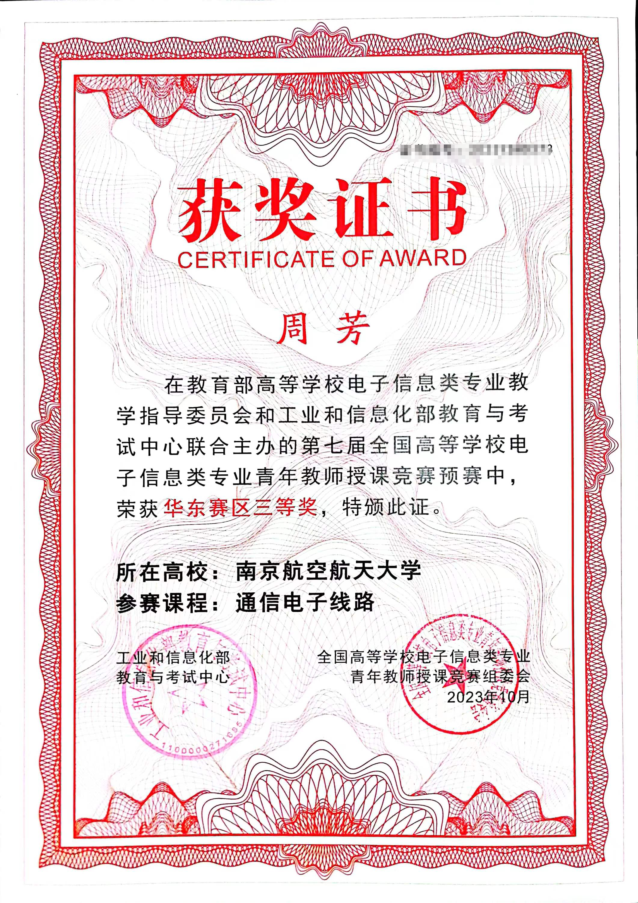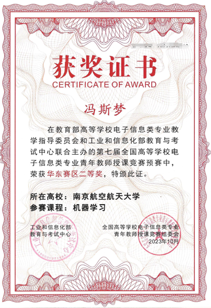 第七届全国高等学校电子信息类专业青年教师授课竞赛于2023年10月22日在桂林电子科技大学顺利结束。成人漫画 信息与通信技术系冯斯梦老师主讲课程《机器学习》获华东赛区二等奖,集成电路系周芳老师主讲课程《通信电子线路》获华东赛区三等奖。
